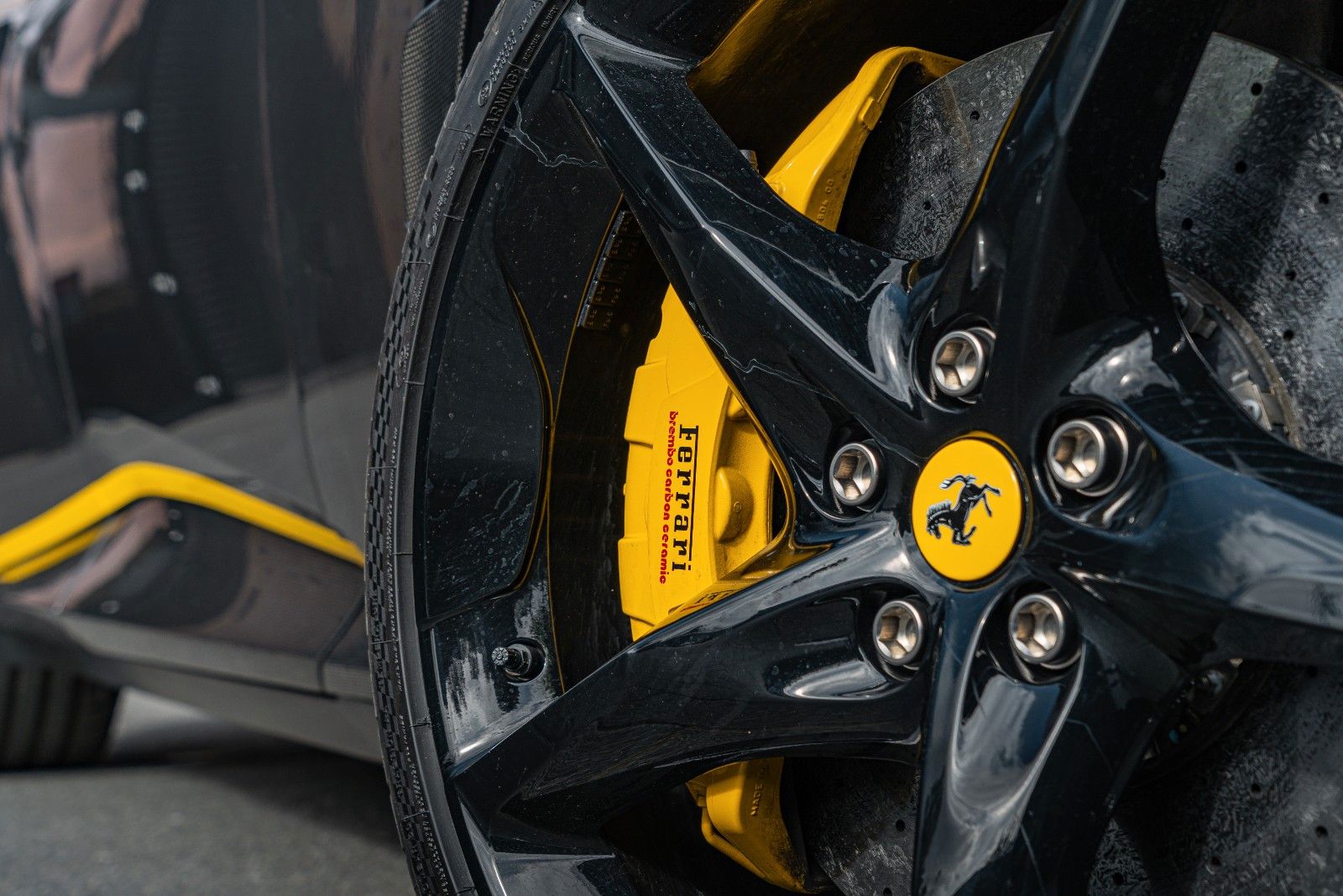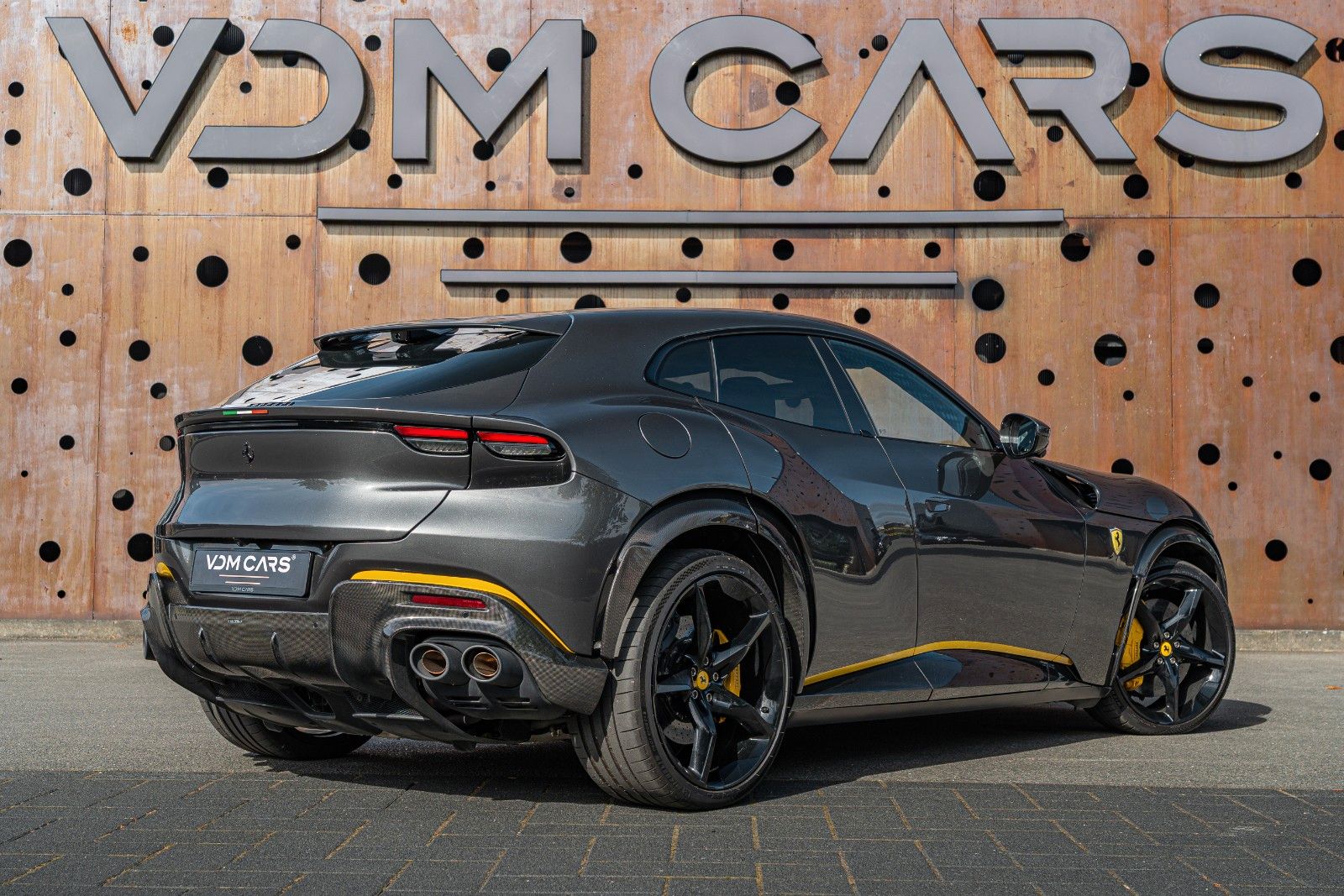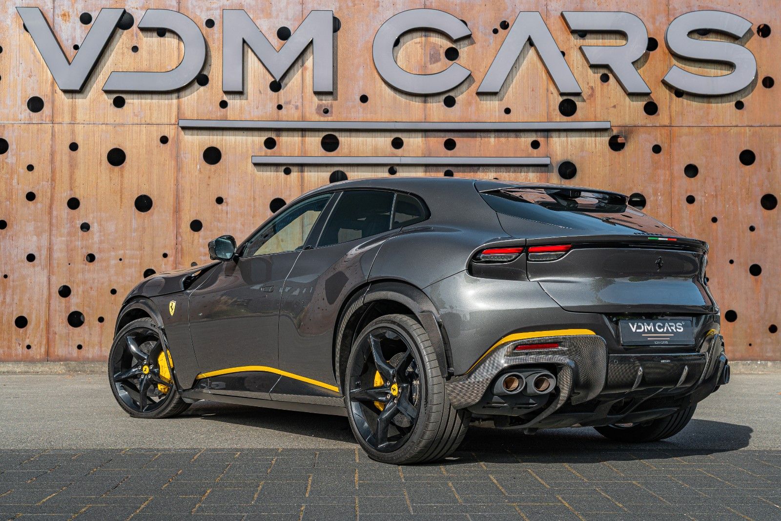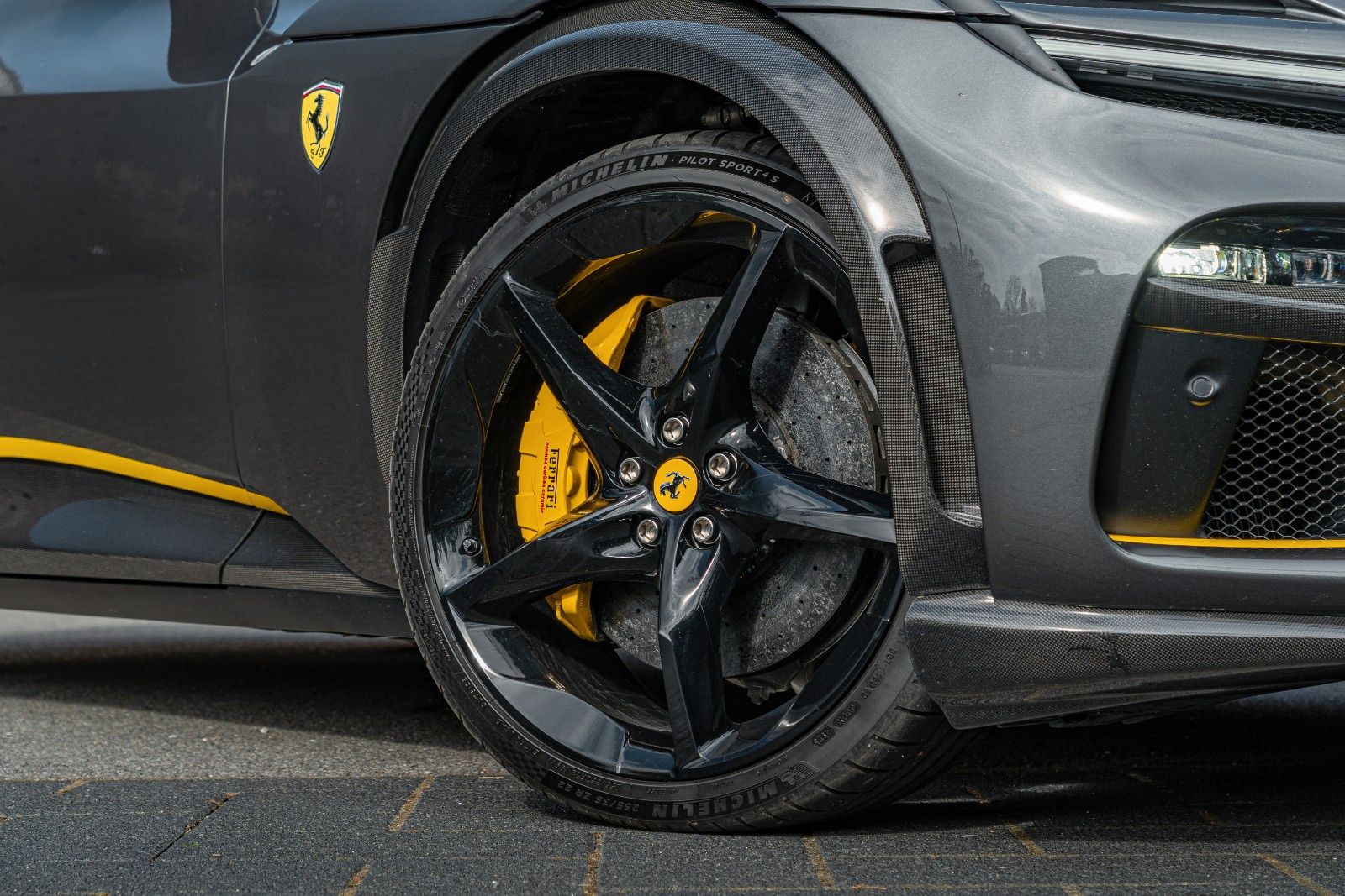It is further enhanced with a Novitec sports exhaust ( €18.921) full paint protection film (PPF), and unique personalization details such as Giallo accents, Tricolore badge, and black Ferrari emblems.