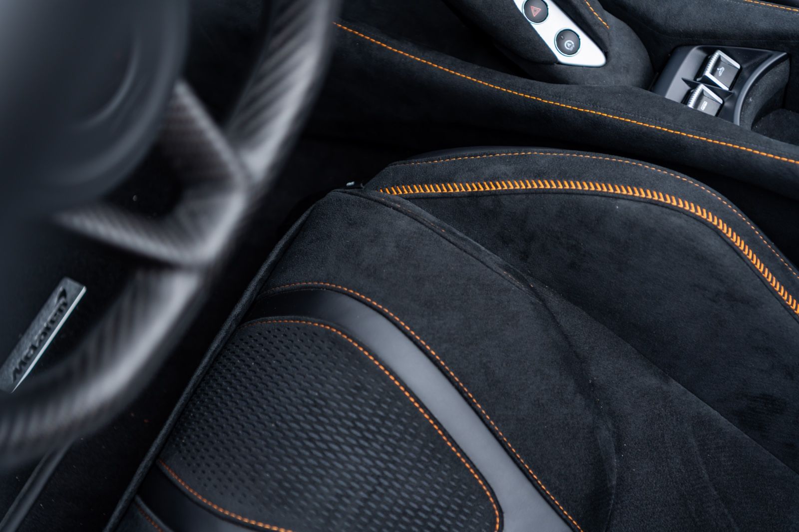 Interieur: 750S Performance Interior, Carbon Black Alcantara / Jet Black Leather with Contrast Stitch in McLaren Orange