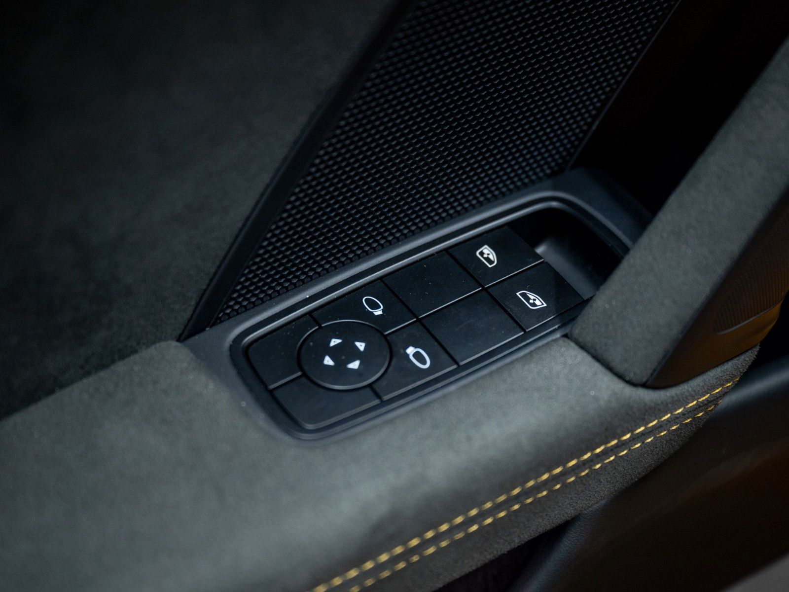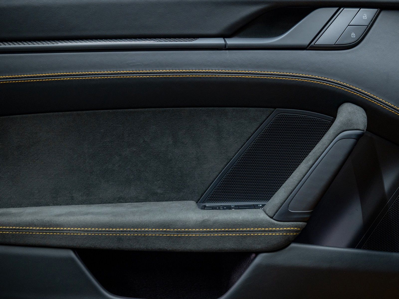 Race-Tex-Armlehne in der Mittelkonsole mit „PORSCHE“-Logo